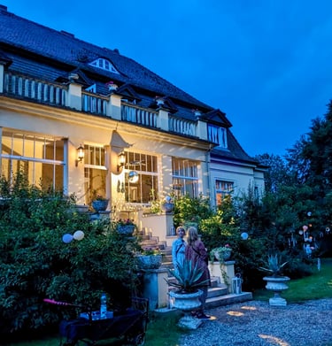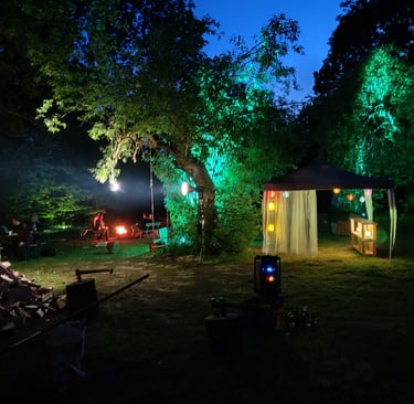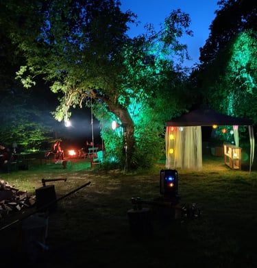 Wir begrüßen Feiern ab 10 Personen bis zu 120 Personen. Im Gutshaus können 20 - 30 Personen übernachten. Wir haben 2 Glamping - Zelte mit je 4 Schlafplätzen. Auf der Walnuss-Wiese ist viel Platz für Zelte und Wohnmobile. In den umliegenden Dörfern gibt es schöne Ferienwohnungen.